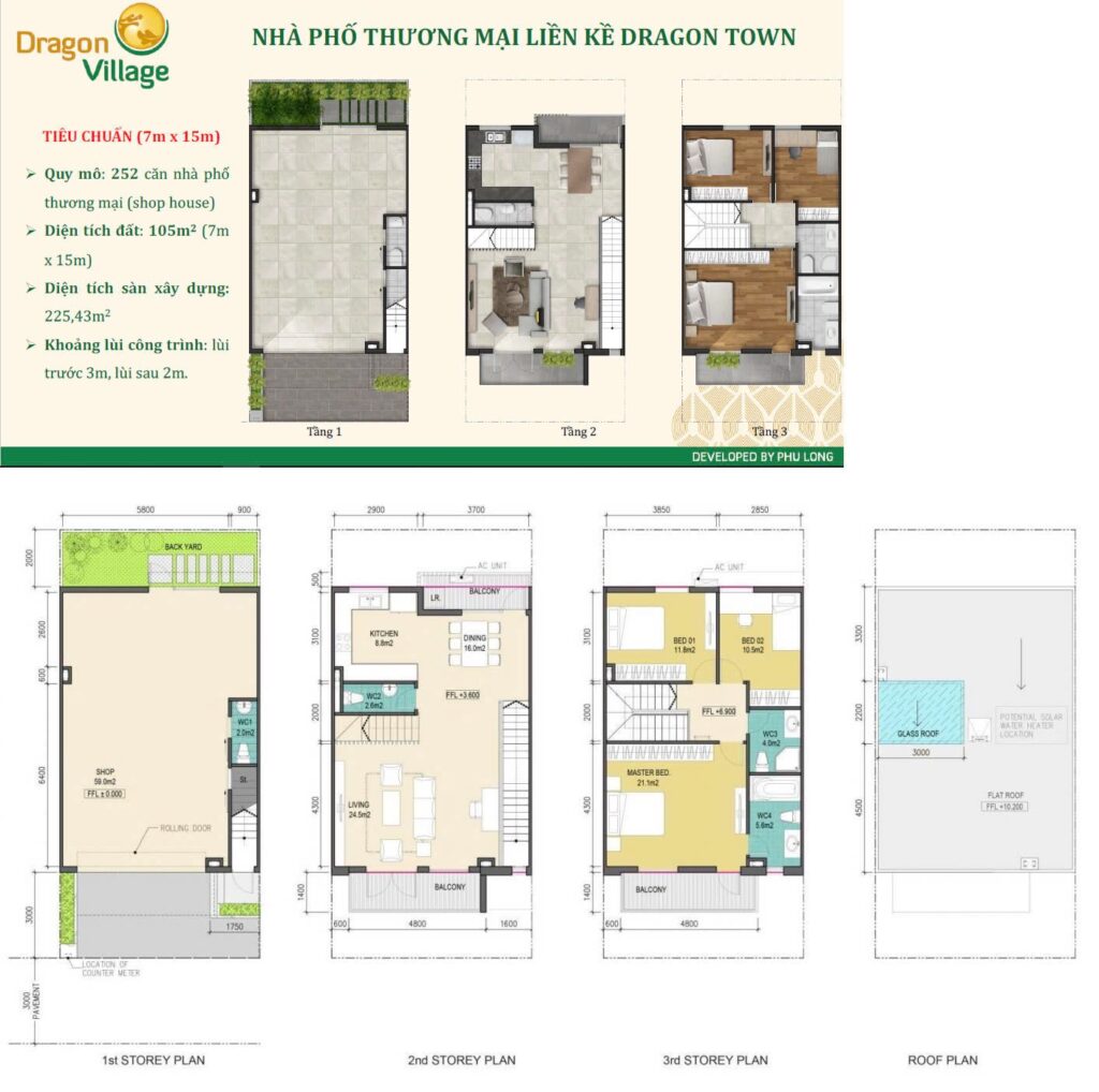 Shop House Dragon Town: 252 căn, 7m x 15m ( 1 trệt + 2 lầu)