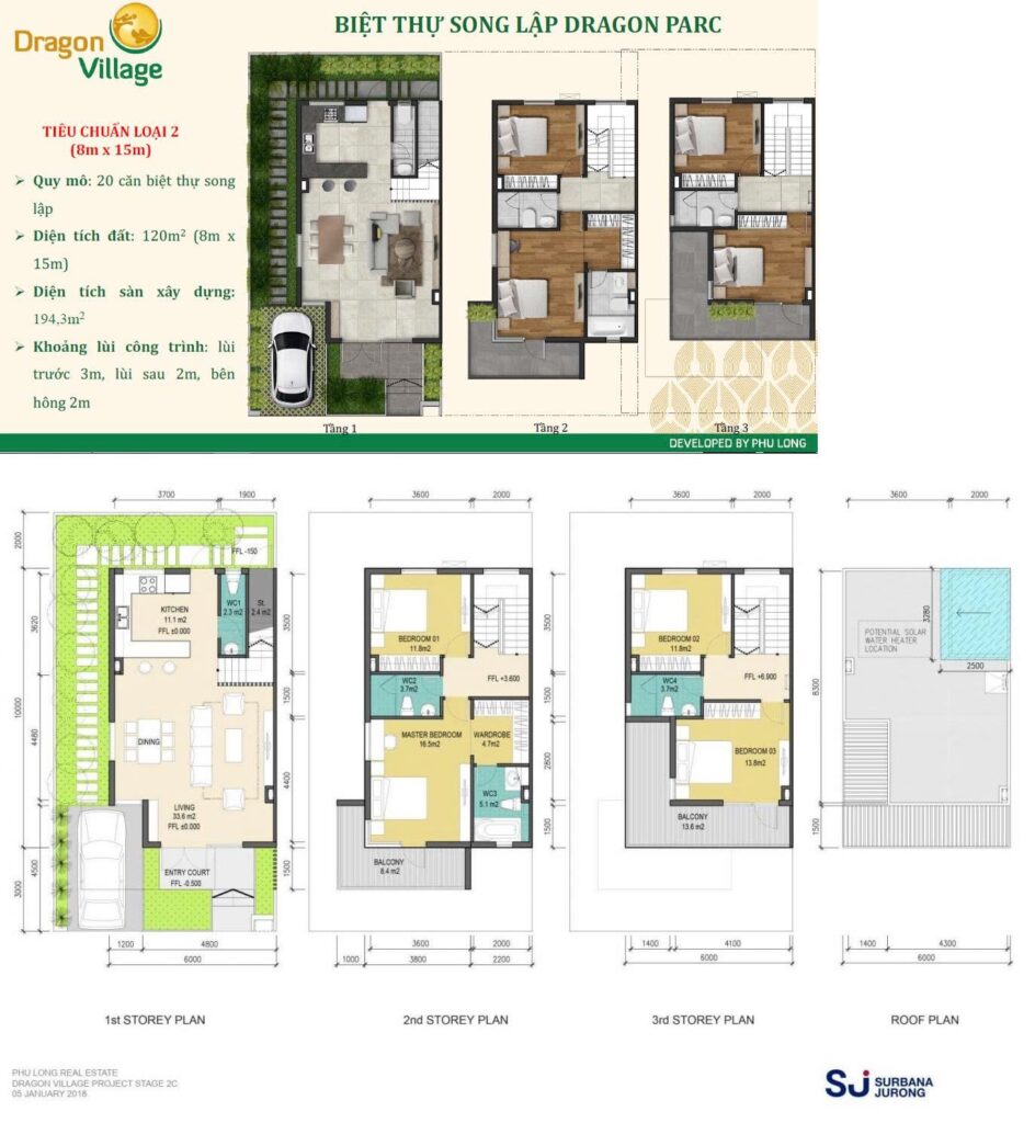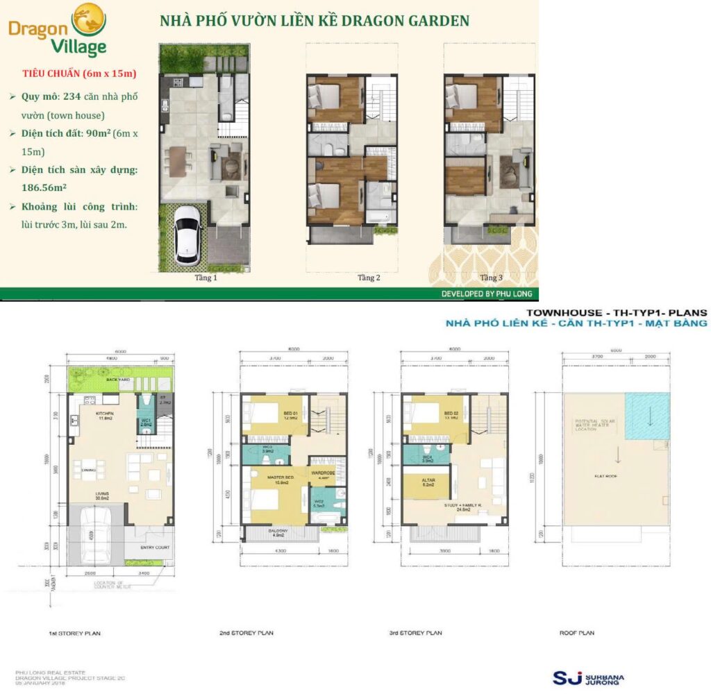 Nhà Phố Dragon Garden: 234 căn, 6m x 15m (1 trệt + 2 lầu)