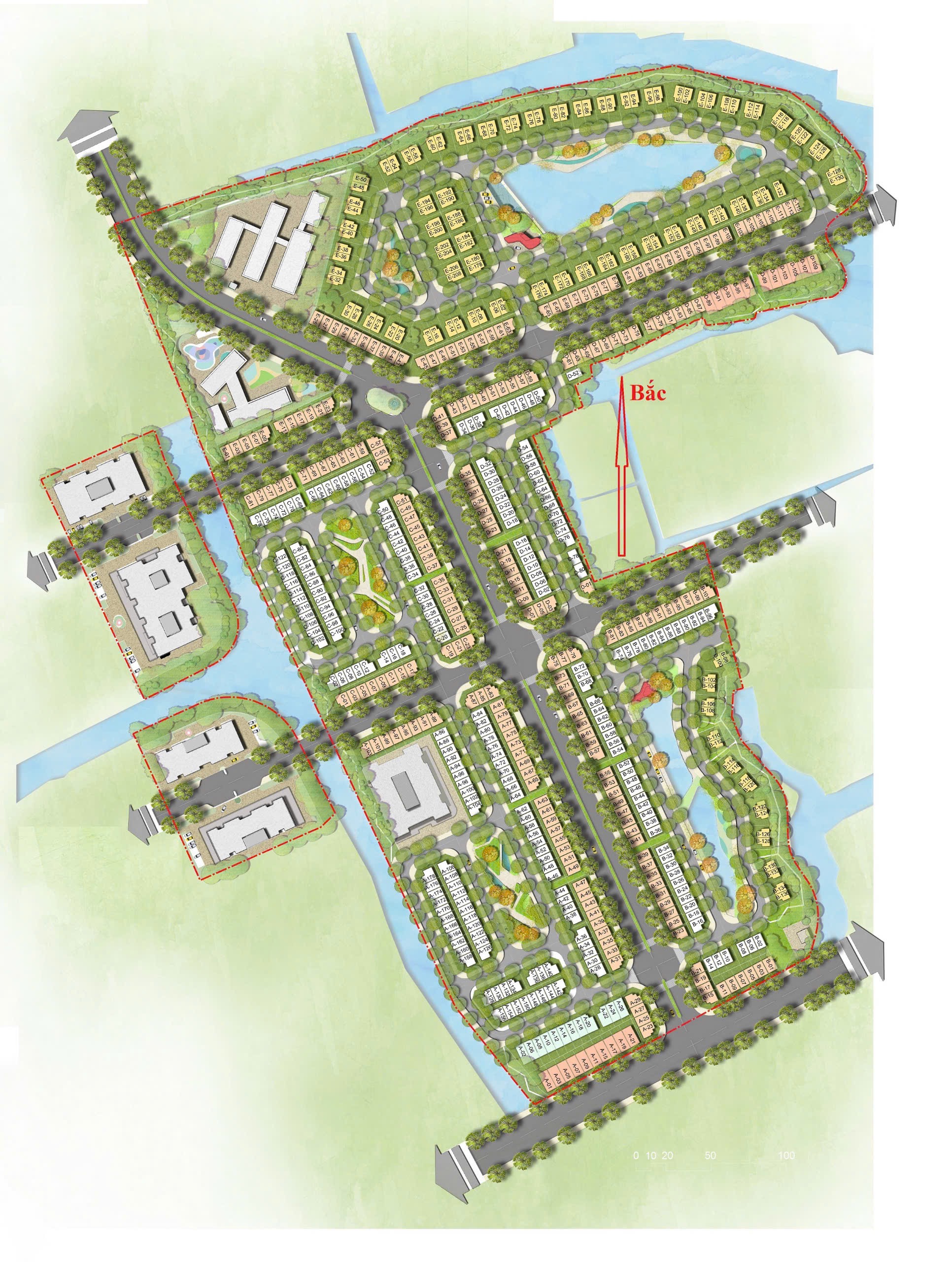 ► Diện tích cây xanh – mặt nước: chiếm 60% diện tích toàn khu